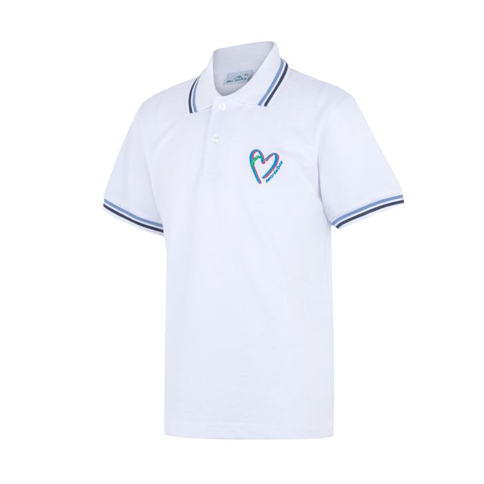 • Polo colegial de manga corta, realizado en pique con cuello y parte final de las mangas en canalé.
